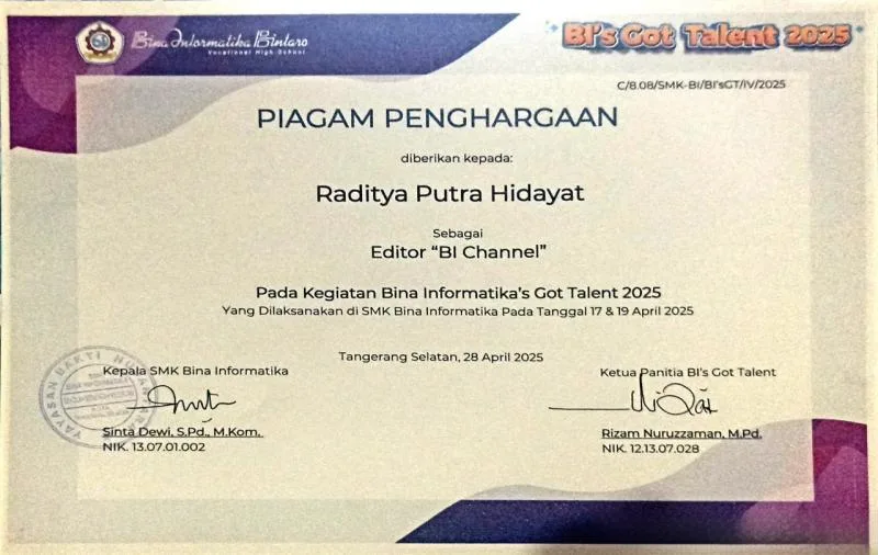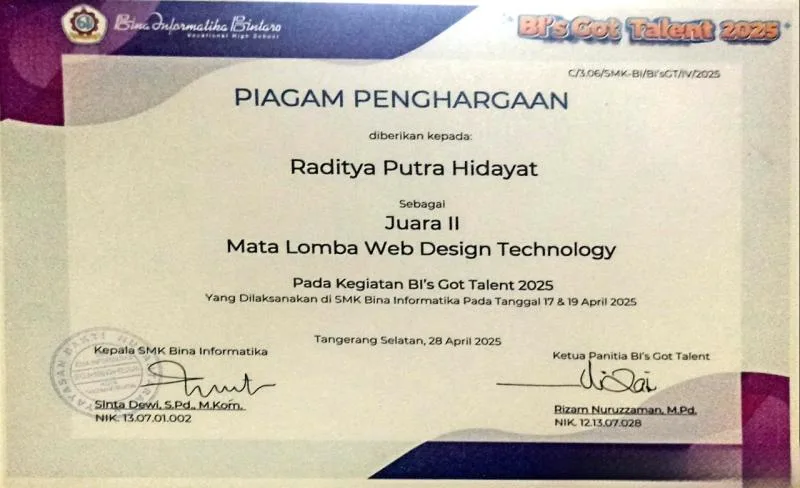 Bina Informatika Got Talent Web Design Technology: Juara 2